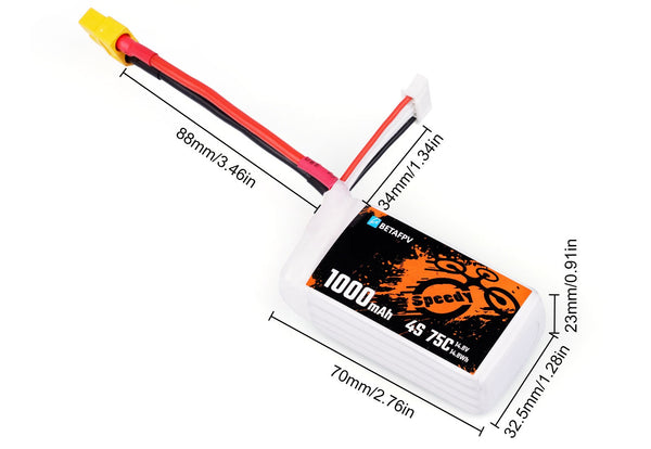 - 2 * BETAFPV 1000mAh 4S 75C Lipo Battery