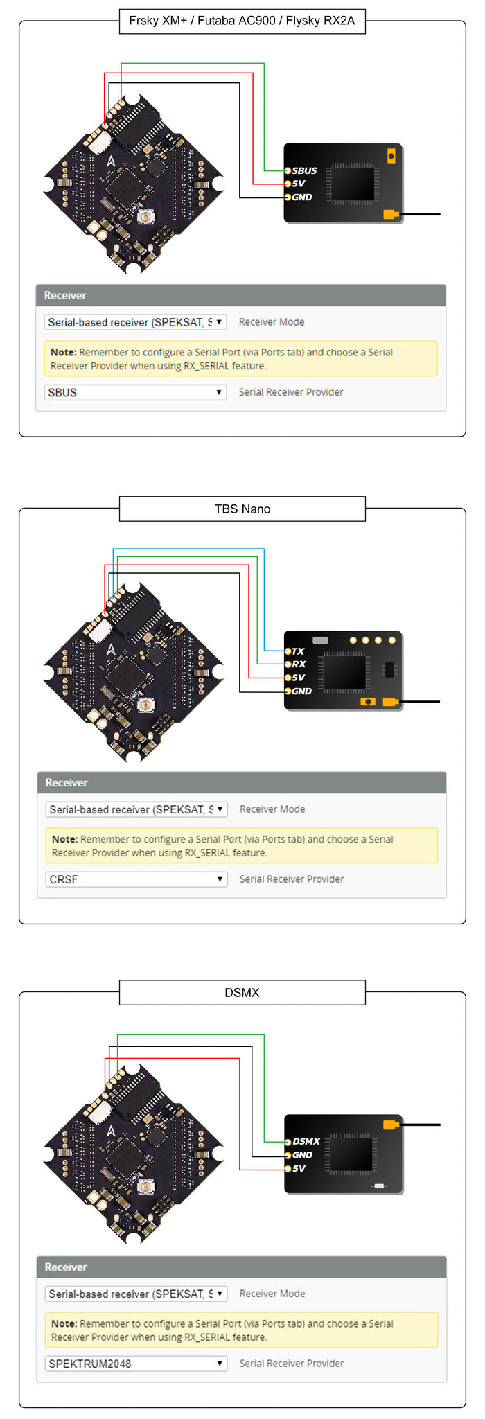 - Receiver: Support External Receiver, SPI Receiver, including Frsky XM/XM+ receiver, Futaba receiver, Crossfire receiver and DSMX receiver