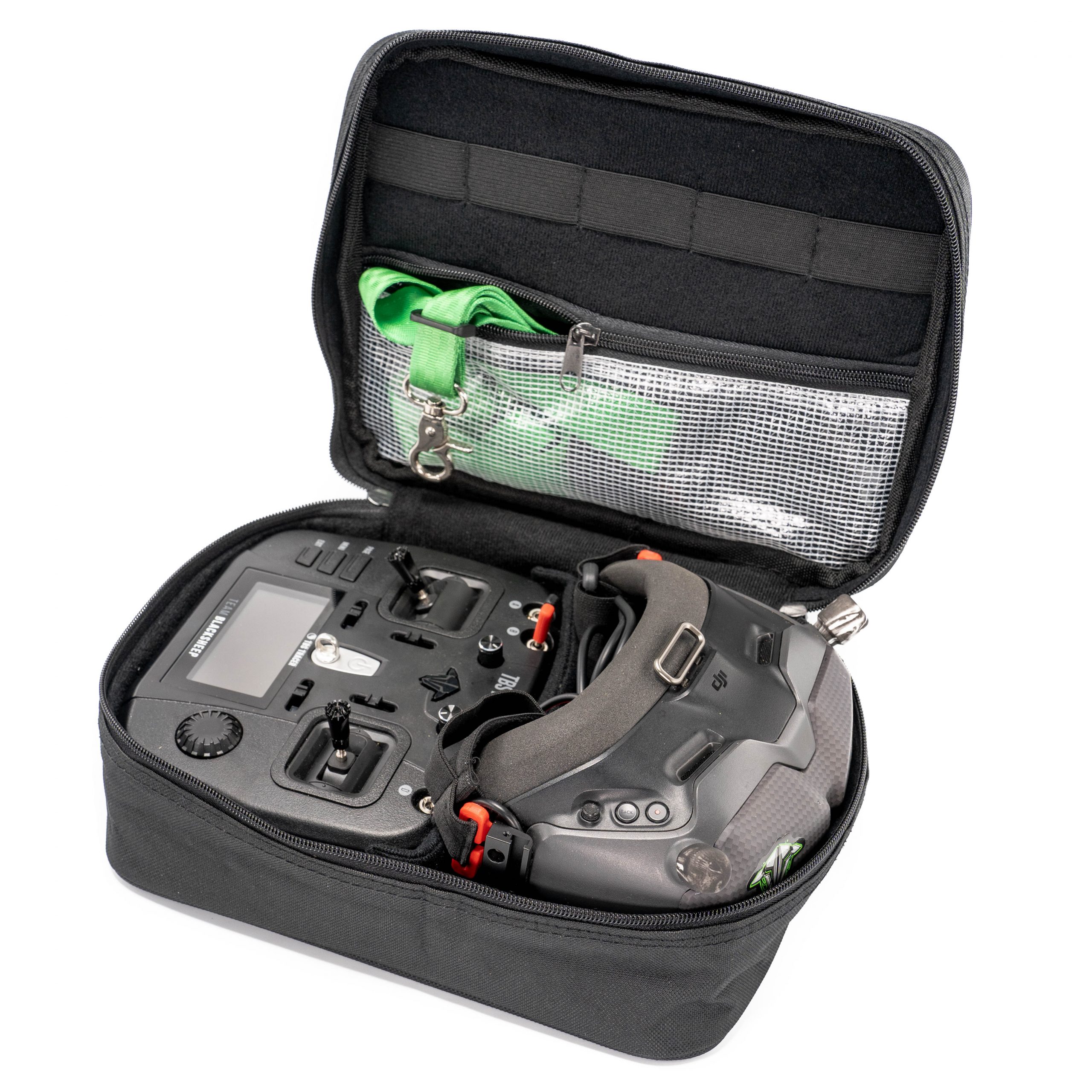 Der FPV Packwürfel V2 bieten ausreichend Platz für grosse (klassische) Fernbedienungstypen wie beispielsweise die “Radiomaster TX16S” oder die “Frsky Taranis X9D” sowie für die etwas grössere DJI FPV Goggles. Falls du kompakte Funke verwendest wie zum Beispiel die “TBS Tango2”, “TBS Mambo” oder eine “Frsky X-lite” ist es möglich die Funke und die FPV Goggles (analog oder digital) in einem Packwürfel unterzubringen.