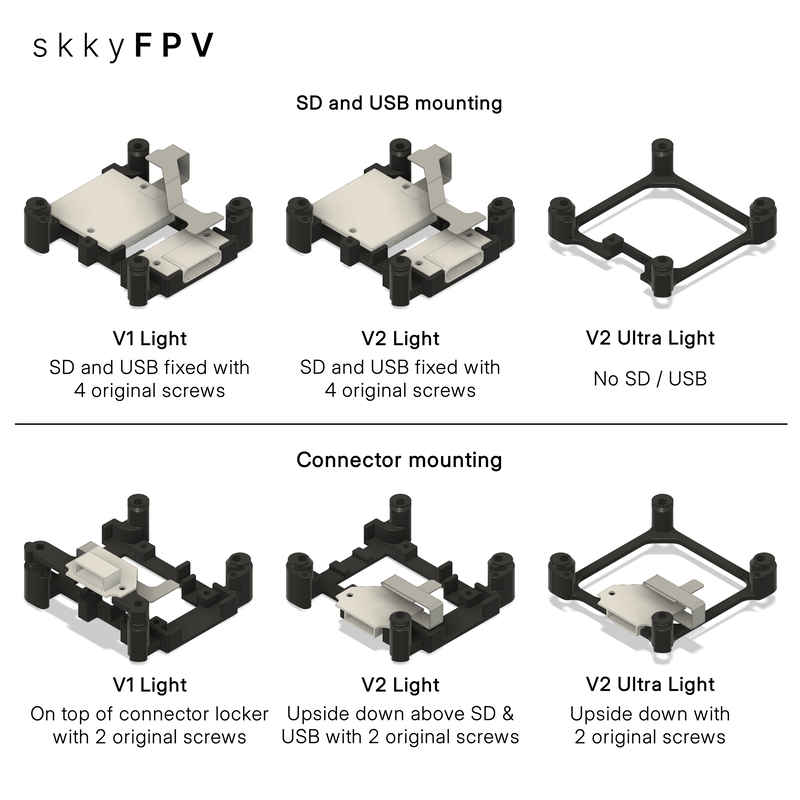 – V2 Light: Lighter and more compact design with 2 screws camera mounting