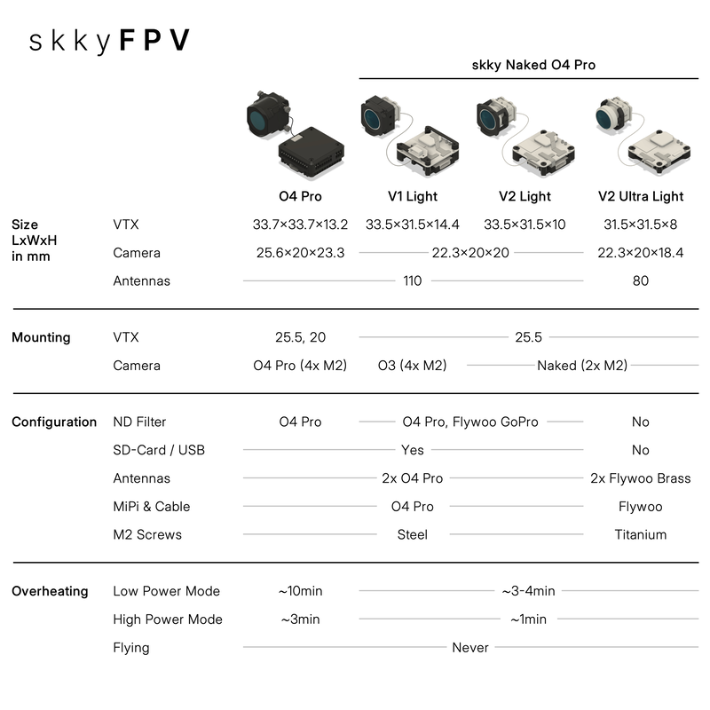 – V1 Light: Mount the O4 Pro in an O3 frame and use the 4 screws camera mounting
