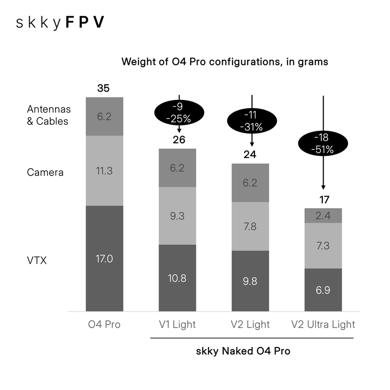 – Save 11-18g (17-24g weight for the naked O4 Pro vs. 35g of standard O4 Pro)