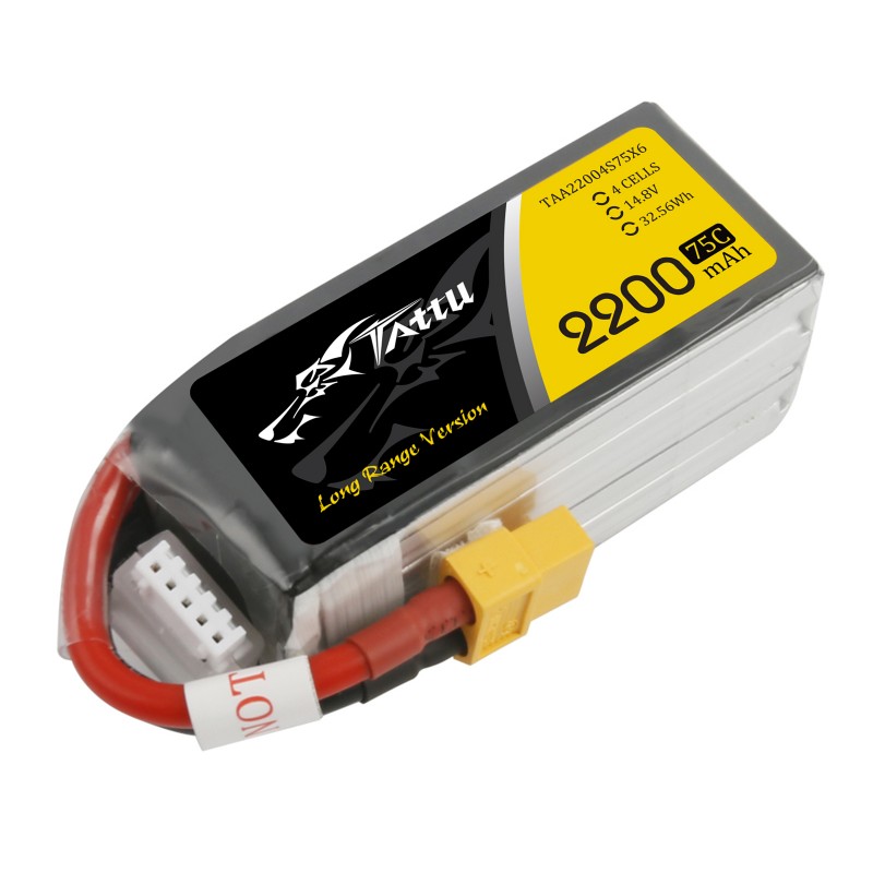 Tattu 2200mAh 4S 75C 14.8V long range version can reach the flight times of 5~8min, it can provide consistent high power, stable and smooth, with long endurance, can also be used on some aircraft to seek faster speed. The Tattu and Gens ace batteries hold the traditional concept of „excellent quality“, „Optimization“ & „Priority“ on Sales & Services. Best choice for professional pilots and hobbyist.