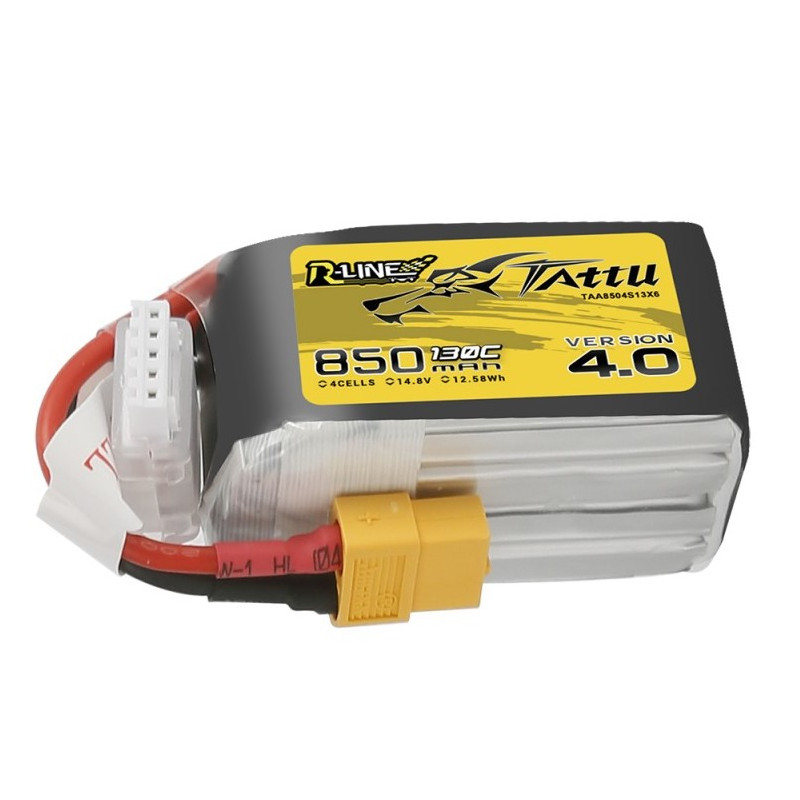 Tattu R-Line Version 4.0 850mAh 4S 14.8V 130C Lipo Battery Pack with XT60 Plug