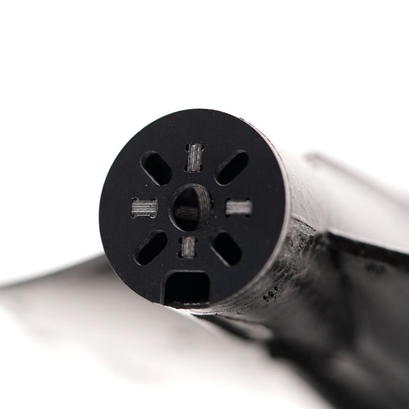 - Carbon fiber spars, glass fiber motor and camera mounts
